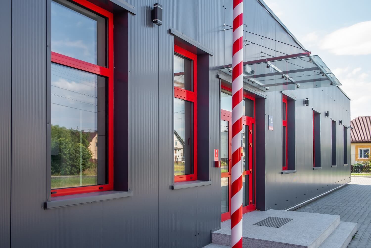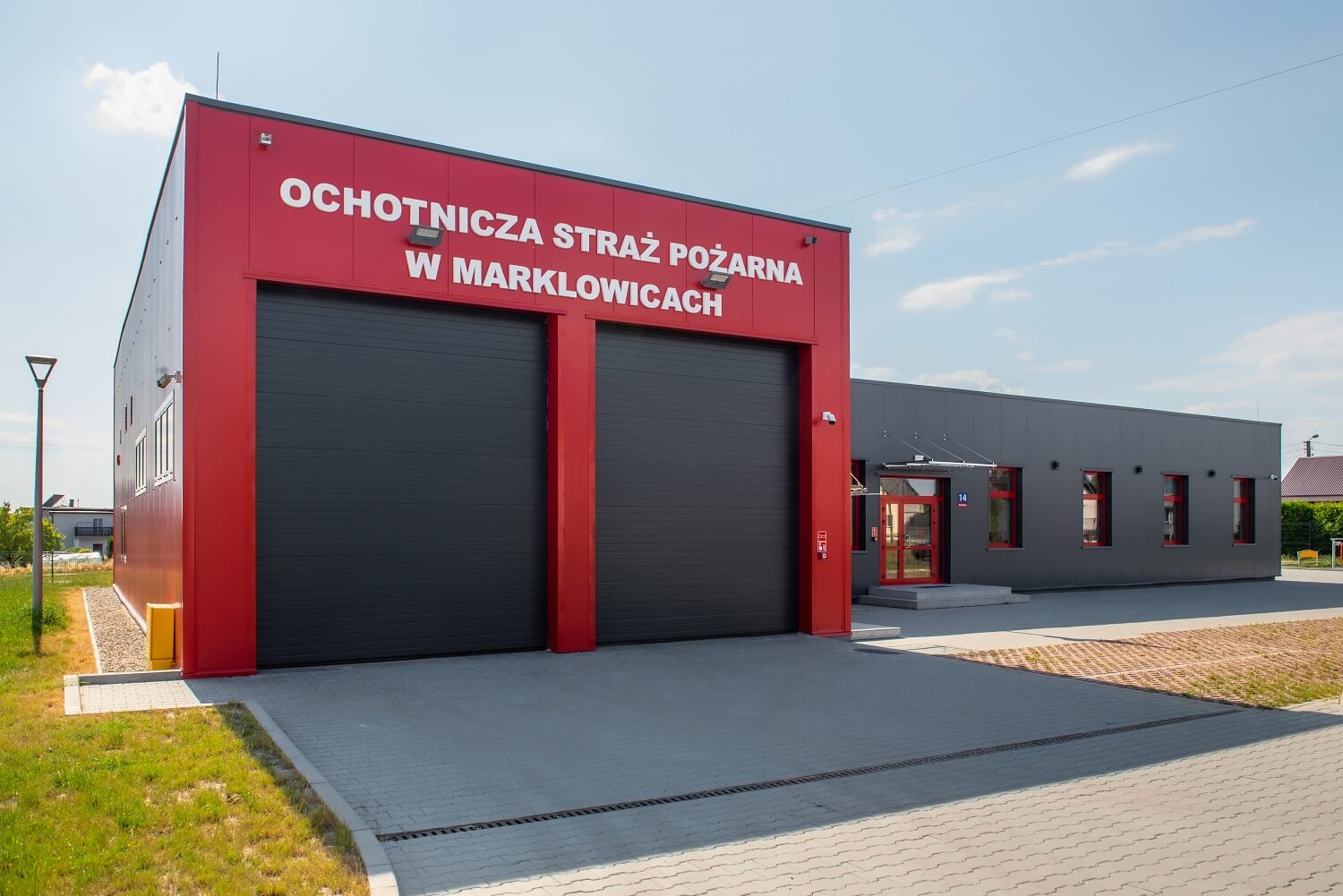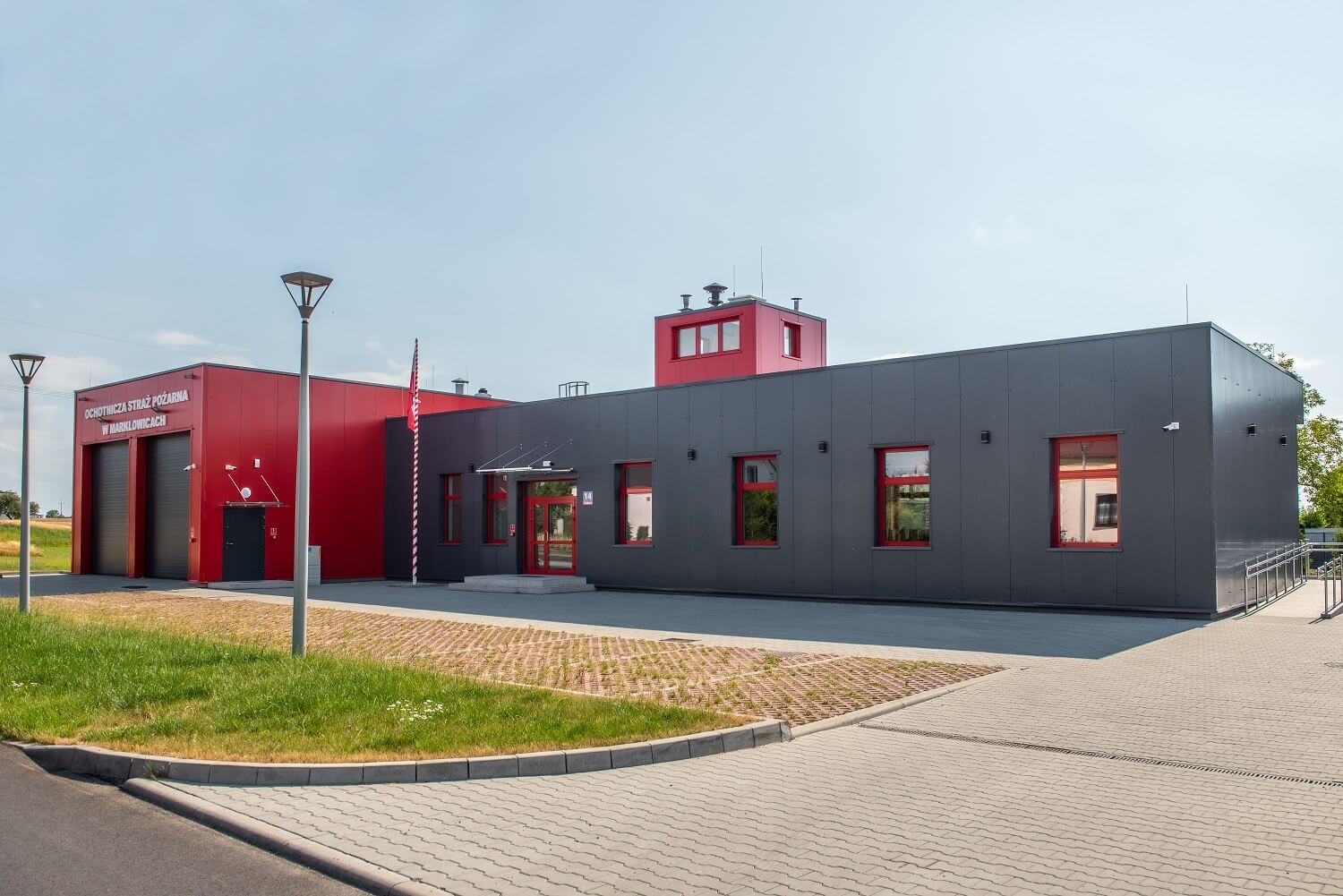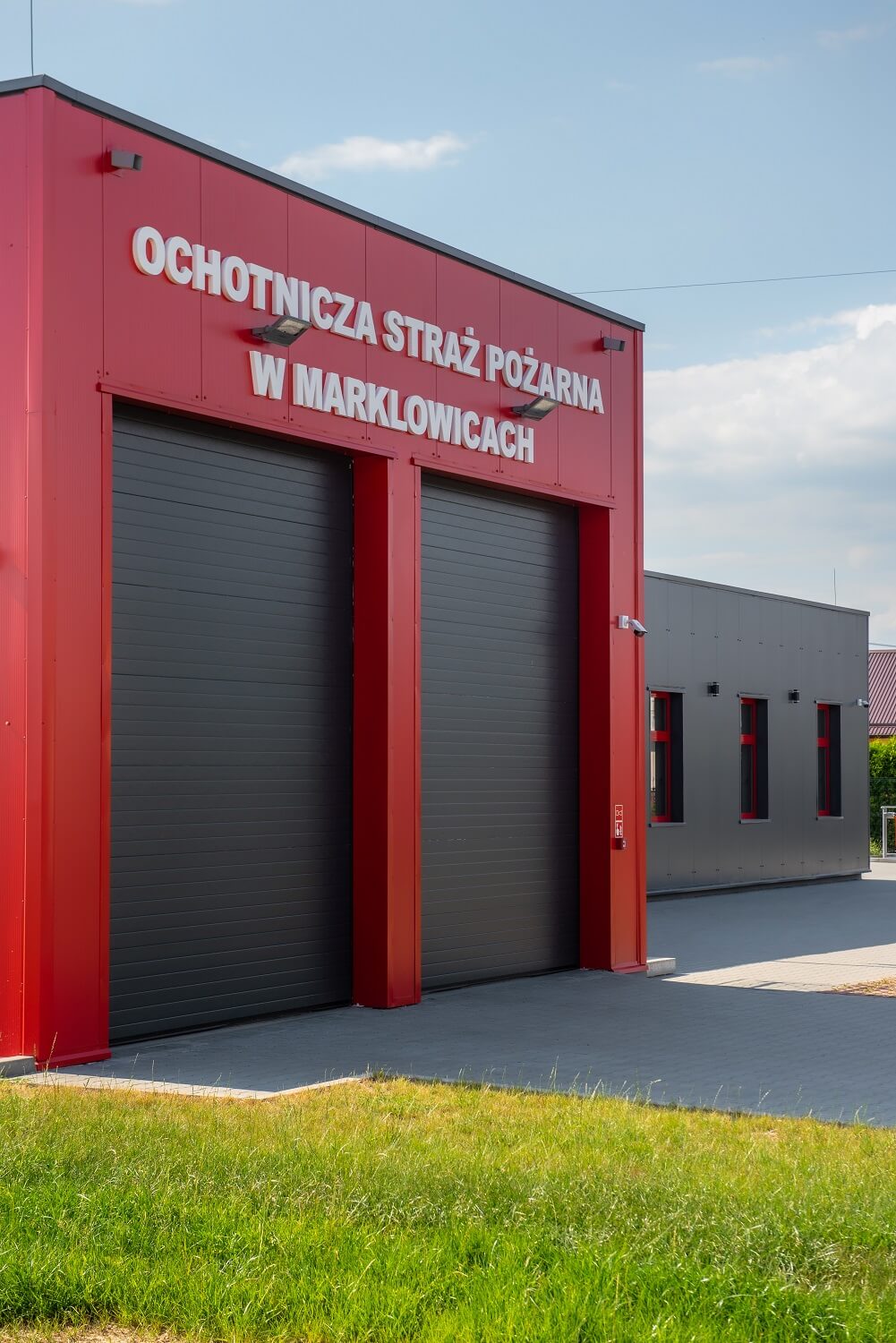 Sieninės daugiasluoksnės plokštės ARPANEL S MiWo, spalva RAL 3000 ir ARPANEL S PUR, spalva RAL 7024 buvo naudojamos Marklowicų Savanorių ugniagesių tarnybos gaisrinės sienoms uždengti ⛑🚒🏣🚨