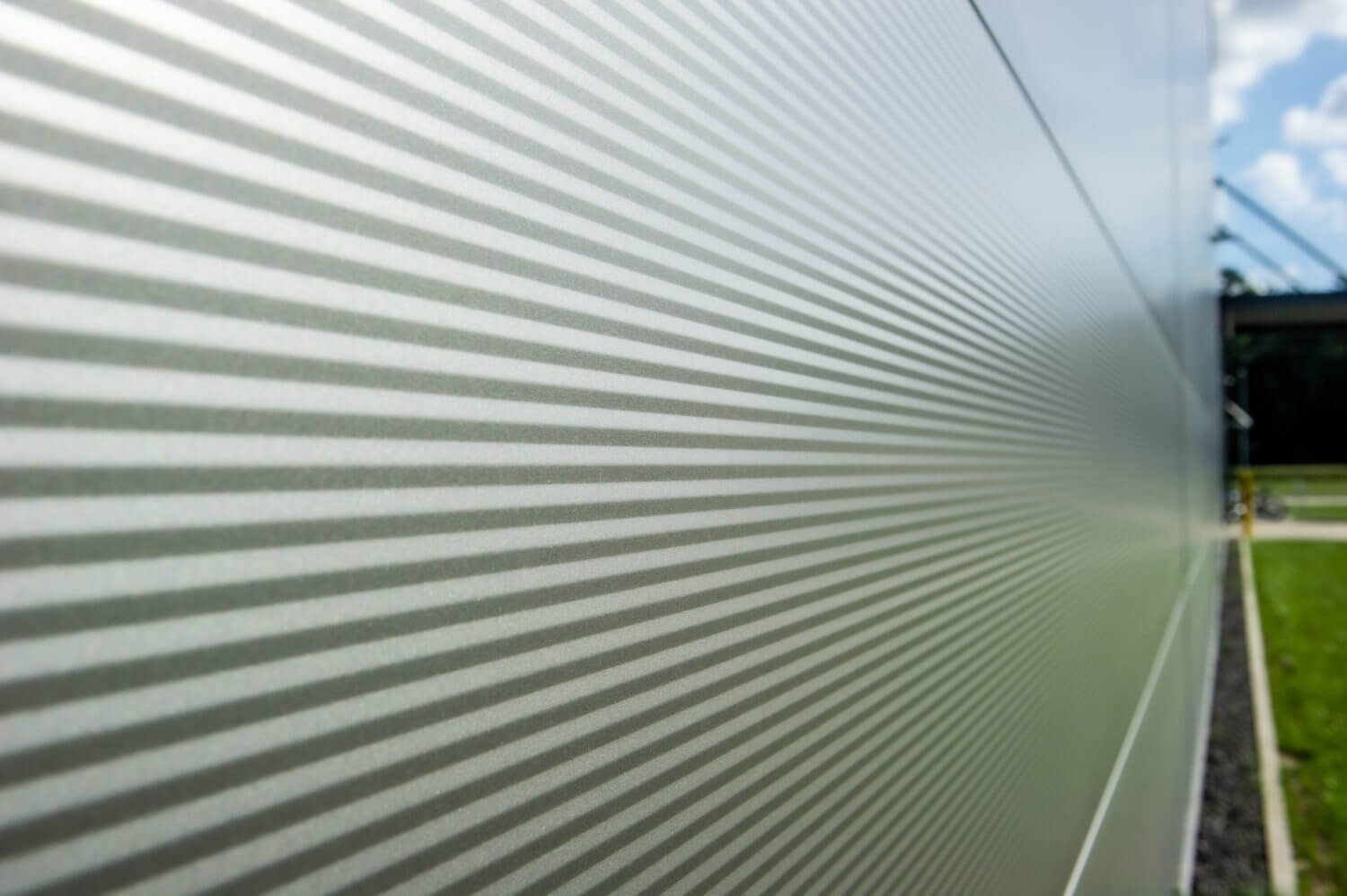 Objekto korpusui buvo naudojamos sieninės daugiasluoksnės plokštės ARPANEL SU PIR su paslėpta tvirtinimo sistema, spalvos RAL 7016 ir RAL 9007.