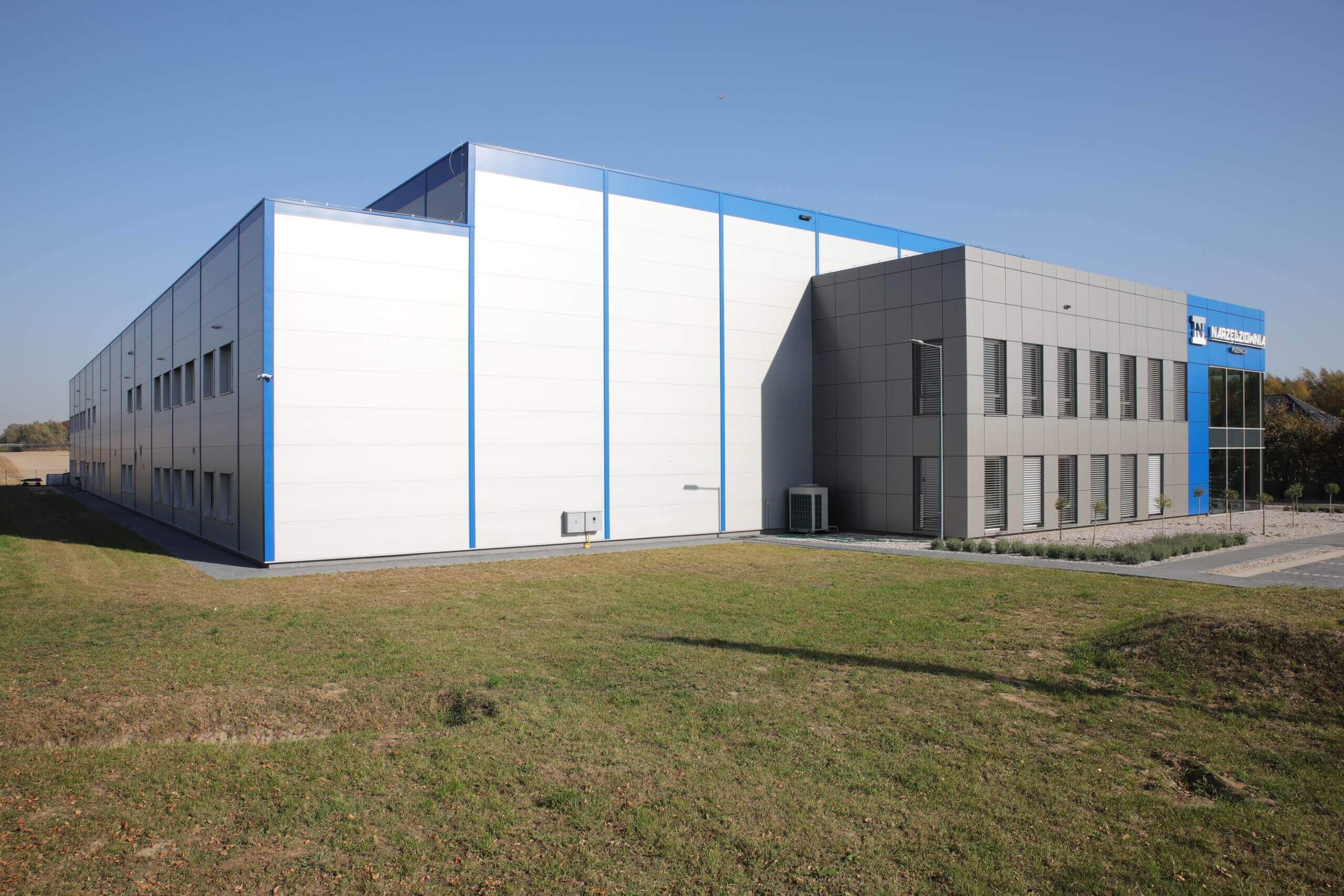 Įrankių pastatas vietovėje Strojec iš sieninių daugiasluoksnių plokščių ARPANEL S MiWo, spalvos RAL 9006 ir 5010.🔧🔨