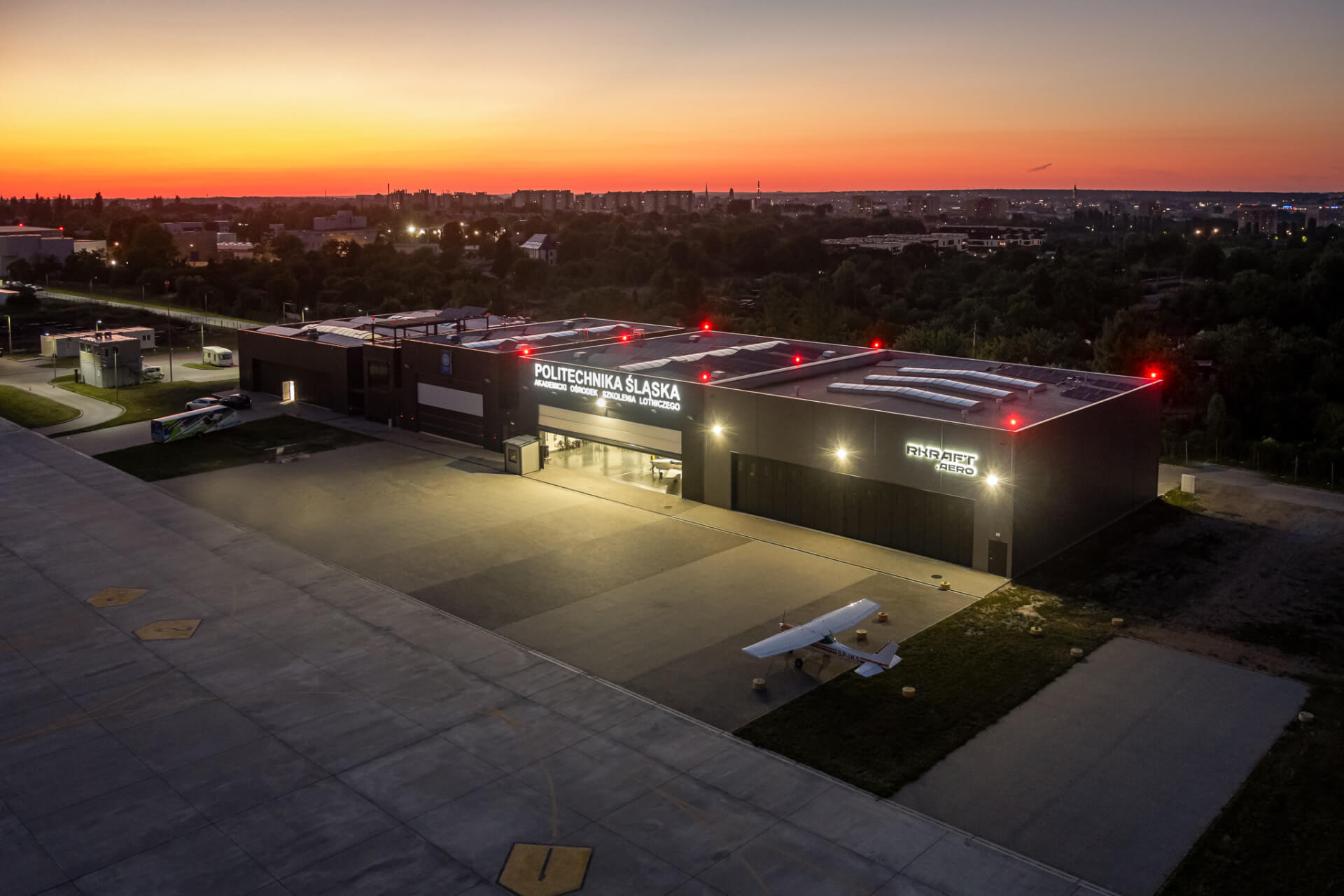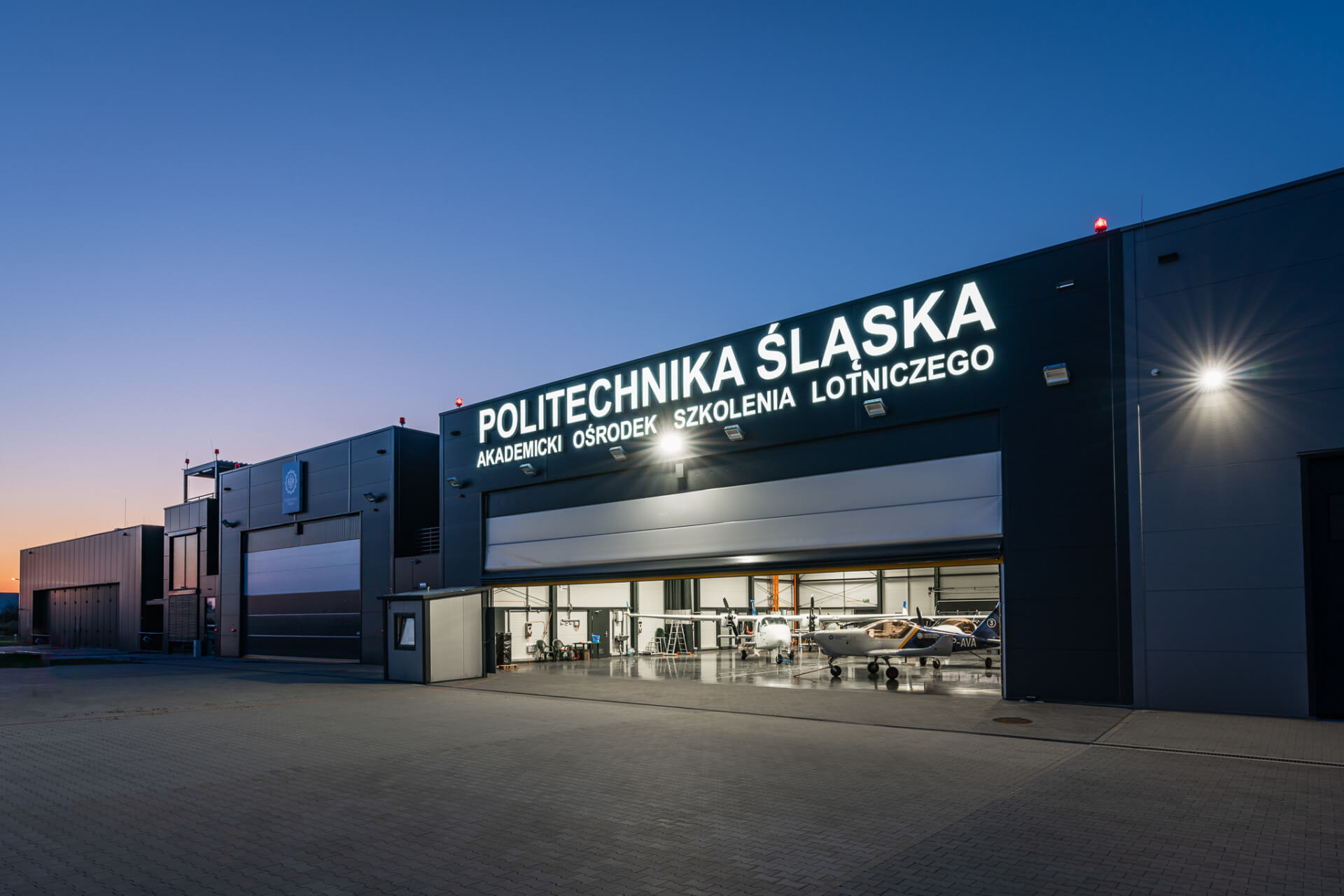Tai Silezijos technologijos universiteto orlaivių angaras, esantis Lenkijoje.![]()