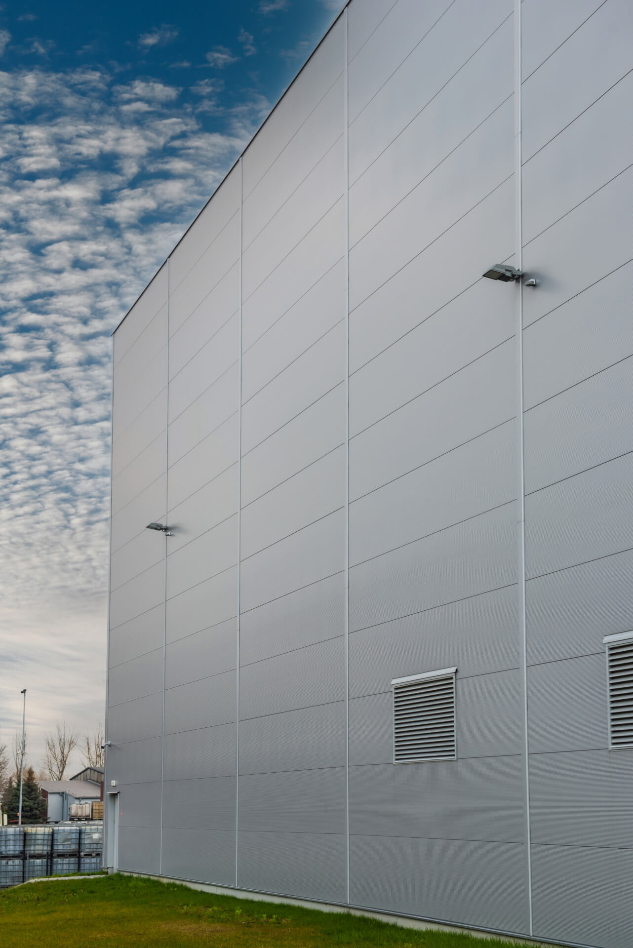 Objekto korpusui buvo naudojamos sieninės daugiasluoksnės plokštės ARPANEL S PIR ir ARPANEL S MiWo, spalva RAL 9006.