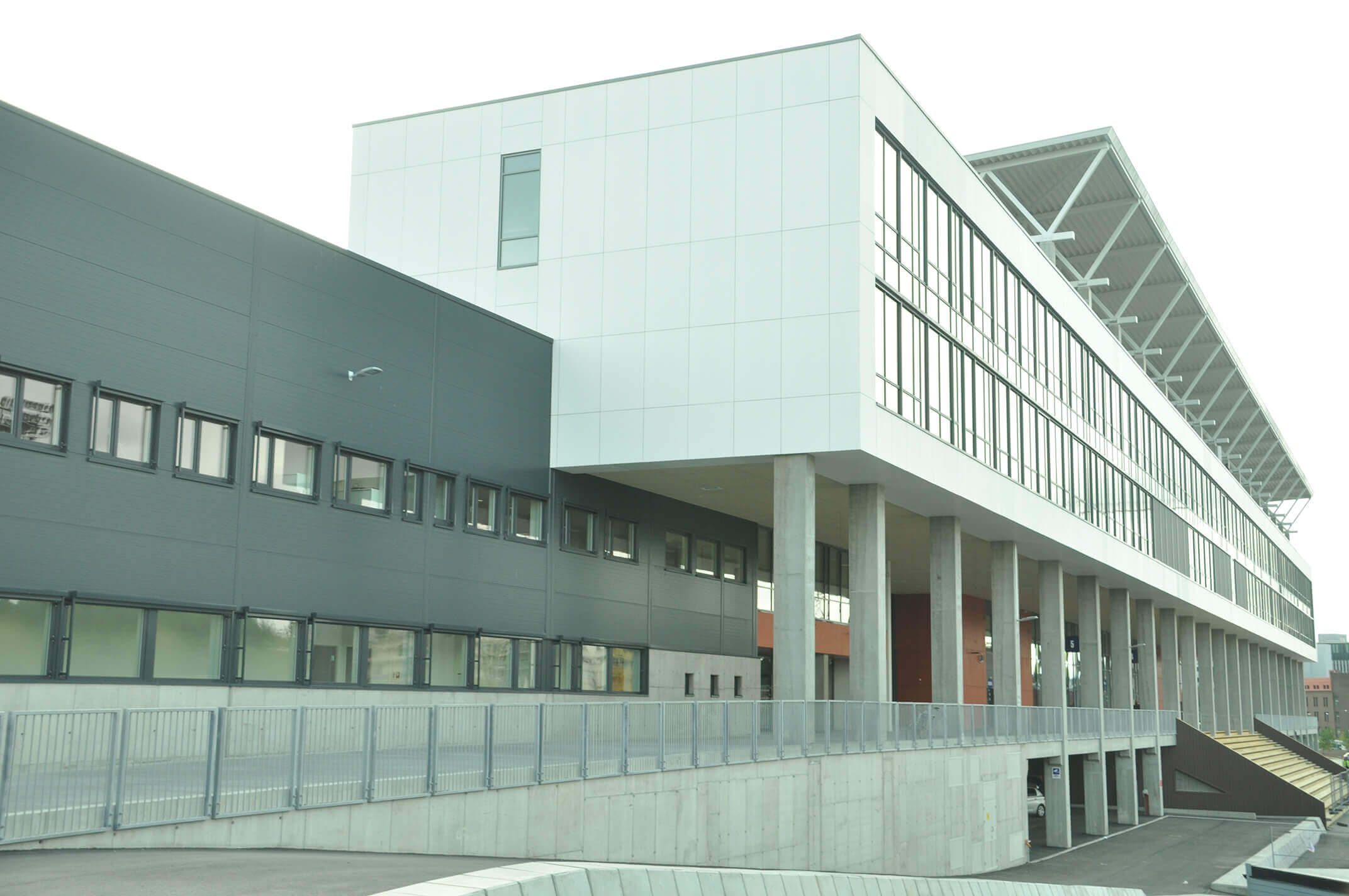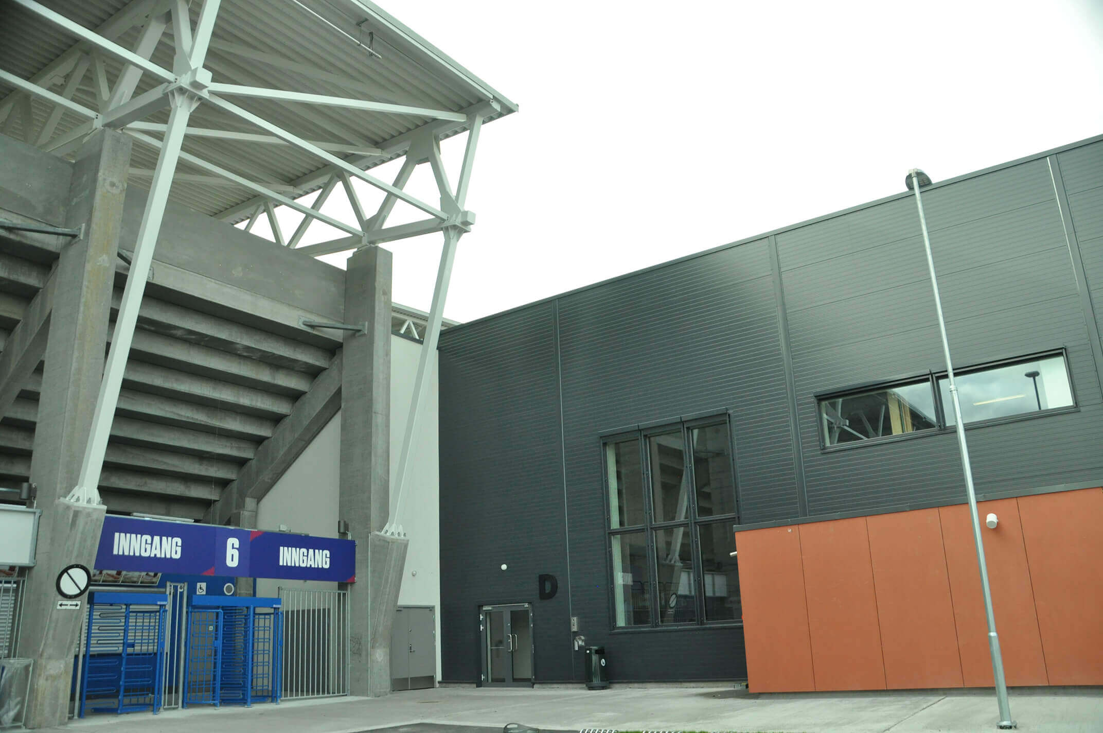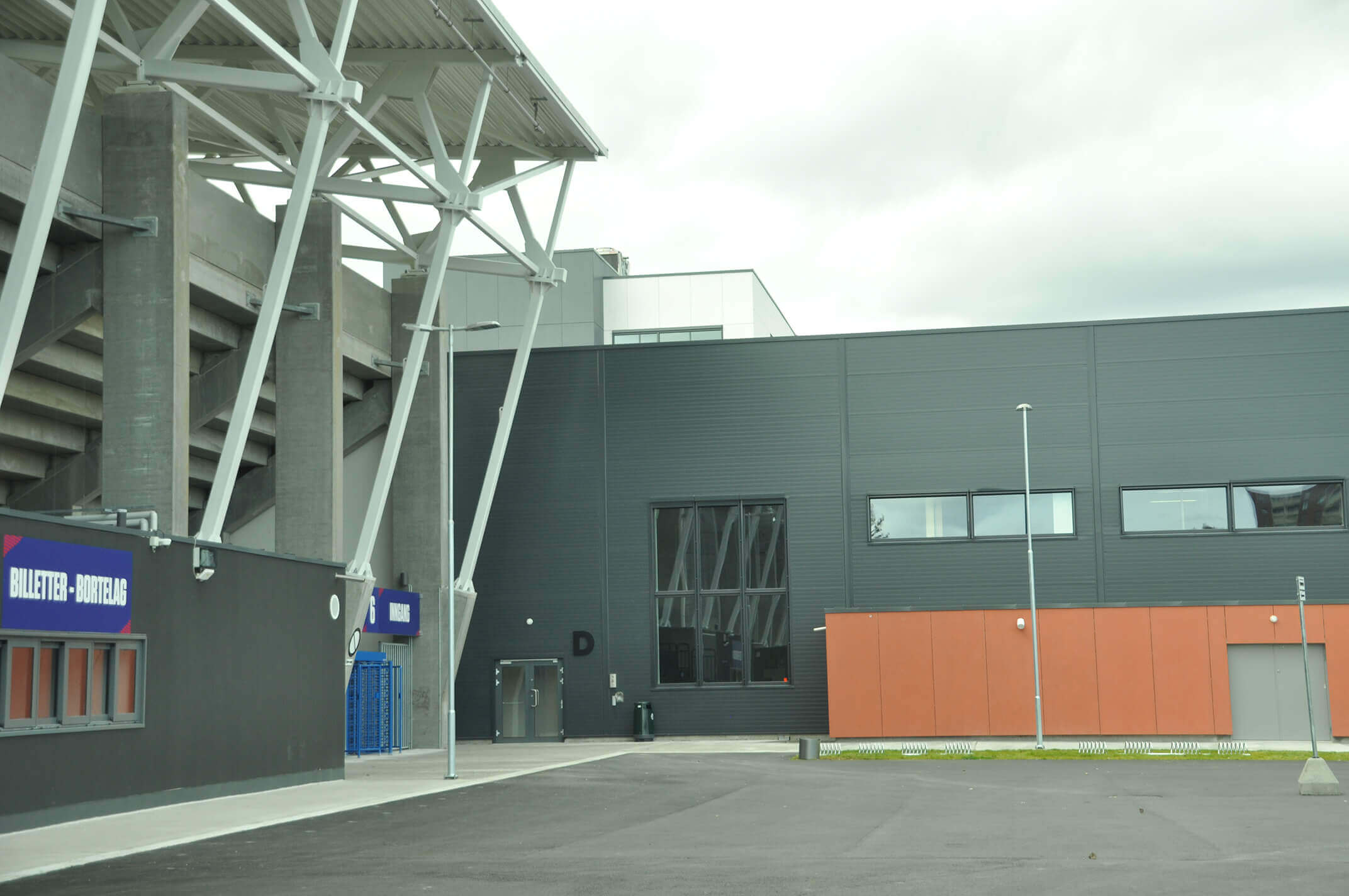 Sieninės daugiasluoksnės plokštės ARPANEL S MiWo, 220 mm gr., spalva RAL 7016 kaip Vålerenga Stadion Osle korpusas.
