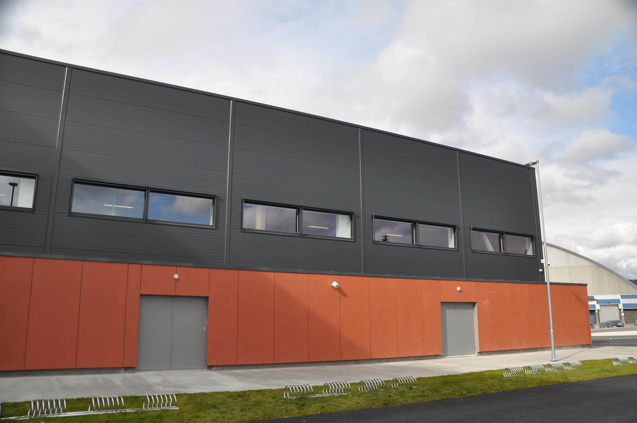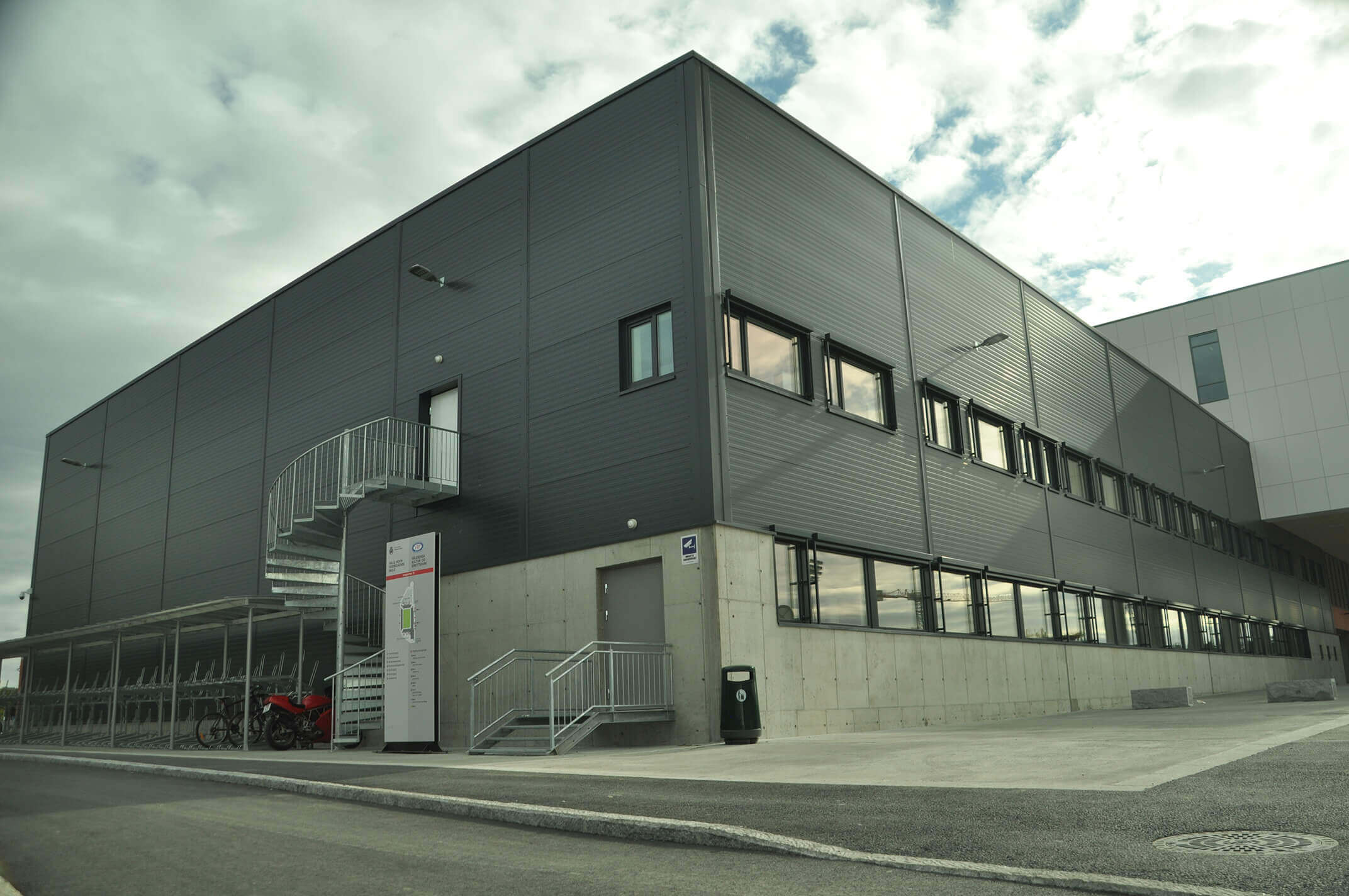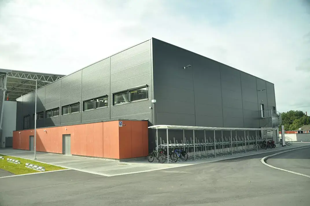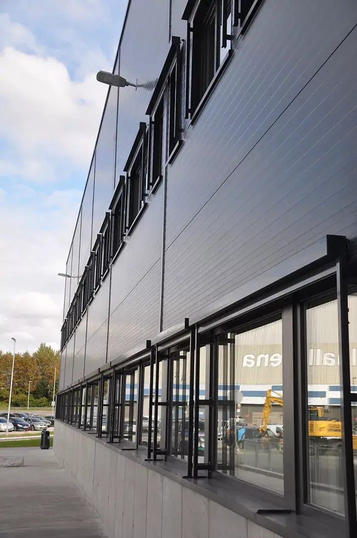 Sieninės daugiasluoksnės plokštės ARPANEL S MiWo, 220 mm gr., spalva RAL 7016 kaip Vålerenga Stadion Osle korpusas.