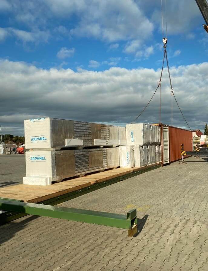 Plokštės buvo dedamos ant fumiguoto padėklo ir sukraunamos į konteinerį, o paskui jūra siunčiamos klientui. 🚢